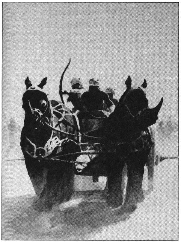 I morgontimman gnistrade slättens frostnupna tistlar som av silver. Vi var vid gott mod och utbytte skämtsamheter såsom: